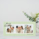 Las pequeñas franjas verticales de color verde menta y crema le dan a esta tarjeta de vacaciones de tres fotos un ambiente moderno y de moda con fuentes clásicas y un largo mensaje personalizado para amigos y familia.