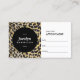 Coordina con la Moda y las elegantes tarjetas de presentación Gold Leopard Print a más tardar a las 12.01 horas. Un fondo glamorosamente hermoso de la huella de leopardo sobre el oro metálico falso se vuelve moderno y moda cuando se combina con un círculo negro para sostener tu nombre o nombre de negocio para un logotipo instantáneo. Estas elegantes tarjetas de cita son perfectas para salones de belleza, peluqueros, maquilladores, pintores de uñas, bares de belleza y más. © 1201AM CREATIVE