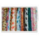 bufandas de muchos colores y estampados de flores que repiten en filas