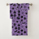 Un modelo caprichoso de Halloween llenó de las arañas, de los palos, de los huesos, de las calabazas, de las casas encantadas y de las pastillas de caramelo. Negro en un fondo púrpura.