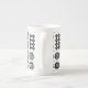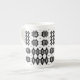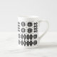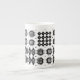 Una taza de café elegante de la porcelana de hueso, con un modelo de los adornos tradicionales de la tapicería Galés en negro en un fondo blanco. Este modelo cabrá todos los tamaños de la taza.
