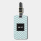 Modelo personalizado de la etiqueta el | Chevron del equipaje del viaje. Diseño con clase de la raya del zigzag con las letras intitial conocidas cones monograma blancas. Idea elegante del regalo del monograma para los hombres y las mujeres que viajan. Color de fondo verde azulado o de encargo detrás de las rayas blancas del zigzag. Etiquetas elegantes para sus bolsos y maletas.