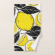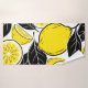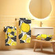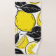A striking and contemporary surface design that offers a burst of citrus energy. This seamless pattern features bold, illustrative yellow lemons and slices, beautifully contrasted with solid black leaves and outlines in a flat vector art style. The vibrant yellow, high-contrast black, and crisp white background create a modern, minimalist, and eye-catching aesthetic