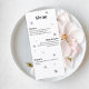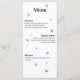 Elevate your reception tablescape with this modern celestial wedding menu card. Designed with elegant serif typography and delicate starburst accents, this minimalist black and white menu blends timeless sophistication with subtle cosmic charm. The clean layout beautifully presents each course — from starter to dessert — while maintaining a refined and airy aesthetic. Perfect for formal evening receptions, contemporary weddings, and chic minimalist celebrations, this menu card complements a cohesive celestial-inspired wedding suite.