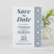 Announce your big day with style and tech-forward elegance using this Modern Dusty Blue Art Deco Save the Date card. Featuring a striking vertical band of interlocking geometric patterns in steel blue and sand beige, this card perfectly captures a contemporary yet timeless aesthetic. The back includes a prominent minimalist monogram and a functional QR code, allowing your guests to instantly scan and visit your wedding website for travel details or digital updates. Perfect for couples planning a chic, architecturally-inspired, or mid-century modern celebration. Fully customizable with your names, date, and personalized QR link.