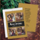 Colage de fotos múltiple moderno, simple y elegante en dorado y negro con tarjeta de saludo "Feliz Navidad". Esta tarjeta es completamente personalizable. Agrega 4 de tus fotos favoritas, cambia los colores de fondo o déjalos tal como están. Las fuentes, el texto y los colores son completamente tuyos. Pero si te gusta tal como está, agrega tus fotos y llena tu información en las casillas de personalización fáciles de usar.