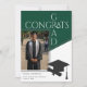 Celebrate your achievement with this modern green and white geometric Congrats Grad photo graduation announcement design. The front features a bold photo layout, while the back includes a stylish cap and diploma silhouette. Perfect for high school or college seniors wanting a minimalist, professional look. Use a color or black and white photo. Created by Simply Farmhouse Press.