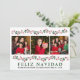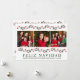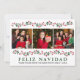 Modern Feliz Navidad Merry Christmas 3 Photo Holiday Card includes winter botanical greenery and holly berries. Green Text.