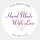 Moderno guión de agradecimiento Pegatina hecho a mano. Moderno minimalista y elegante pegatina blanco y negro para pequeñas empresas. Con una elegante letra de script de firma, todos los colores son editables, agregue su logotipo. Perfecto para el negocio de panadería hecha a mano, el negocio de los bizcochos, el negocio de los chocolates, el negocio de las artesanías, el negocio de los objetos de arte y otros pequeños negocios hechos a mano para promoción.