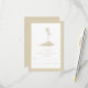 Un moderno club de bodas de playa con un ilustracion de una isla con dos palmeras. Ilustracion, texto y borde son color de arena. Busque elementos coincidentes, como invitaciones y guarde las fechas en el papel de Jill.