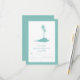 Un moderno club de bodas de playa con un ilustracion de una isla con dos palmeras. Ilustracion, texto y borde son verde azulados. Busque elementos coincidentes, como invitaciones y guarde las fechas en el papel de Jill.