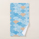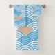 Bring a touch of serene coastal elegance to your bathroom with this beautiful towel set. Featuring a contemporary take on the traditional Japanese Seigaiha (ocean wave) pattern in vibrant cerulean blue and crisp white, accented by a minimalist peach-toned rising sun. Perfect for those who love Zen aesthetics, nautical themes, or modern geometric art.