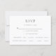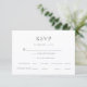 Gathering your guest's meal choices and attendance is made simple with this elegant minimalist RSVP card. Featuring a clean, modern design with a classic script font for 'RSVP', this card is perfect for any wedding theme. The layout includes ample space for guests to fill in their name, indicate acceptance or regret, select their meal preference (beef, chicken, vegetarian, vegan), and specify the number of guests attending. The clean lines and sophisticated typography ensure a polished look that complements your wedding stationery suite.