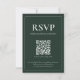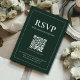 The design features a bold, dark background framed by our signature thin border. At the center, a high-contrast QR code allows your guests to instantly access your wedding website to RSVP,view event details - all with a single scan.