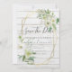 Beautiful white roses and green leaves with a gold frame perfect for a garden, barn, countryside, hotel, spring, summer wedding. It is part of a larger collection that includes budget wedding invitations, rsvps, save the dates, favor stickers and labels, envelopes, wedding party and bridal party gifts, newlyweds gifts to match and more. View the attached collection to view them all.