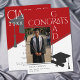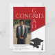 Celebrate your achievement with this modern red and white geometric Congrats Grad photo graduation announcement design. The front features a bold photo layout, while the back includes a stylish cap and diploma silhouette. Perfect for high school or college seniors wanting a minimalist, professional look. Use a color or black and white photo. Created by Simply Farmhouse Press.
