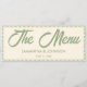 Elevate your reception tables with this modern sage green stripe wedding dinner menu card. The sleek stripe design adds a chic and contemporary touch, perfect for modern, minimalist, or nature-inspired weddings. Fully customizable with your menu items, names, and wedding date, this elegant card creates a cohesive and stylish look for your wedding dining experience.