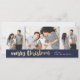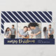 Una tarjeta de foto festiva con un texto de Feliz Navidad en oro con tres fotos y un fondo azul marino.