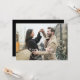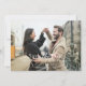 Give hints of your wedding invitation colors and fonts with this save the date photo card. The front features a photo of the couple with wedding date and location info, while the back provides another reminder of the date and a snippet of the wedding colors.