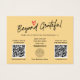 This Trendy modern QR code gift card with stylish calligraphy script is a perfect choice to show your gradtitute to your customer. Features 2 QR code, social media and networking info. On the back of the card you can write more message to your customer or just write your business info. Your customer will loves this pretty and chic QR code gift certificate.
