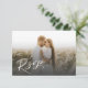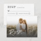 This romantic RSVP card features a stunning engagement-style couple photograph complemented by elegant script typography for a modern yet timeless aesthetic. The front showcases a chic “RSVP” overlay on a soft romantic image while the reverse offers a clean response layout complete with attendance options, guest count and a handy QR code for online replies. Ideal for contemporary weddings, this card seamlessly blends classic stationery with digital convenience. Personalise it with your own photo and response date.
