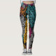 Modern Yellow, Blue and Black Lacy Leaf Leggings