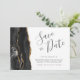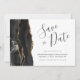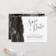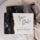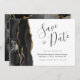Esta elegante y moderna tarjeta de fecha guarda un borde de batido de color negro con un falso purpurina de oro. El texto del personalizable combina guiones de escritura a mano, copperplate y cursiva en gris carbón sobre fondo blanco. El reverso presenta un diseño de agate negro y oro a juego.