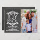 Este diseño presenta la moderna apariencia de "pizarra" con un texto único que dice: "Alegría al mundo". Sube tu propia foto y agrega tus nombres a esta elegante tarjeta de Navidades de fotos planos ¡y ya está lista!