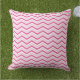 Colorida, luminosa y moderna almohada de chevron rayada al aire libre en rosa caliente, rosa claro y blanco.