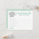 La tarjeta de personalizado "Sweet Wishes for Baby" para una ducha para bebé tiene un elefante bebé con salpicaduras en forma de corazón. El acento con motivos de punto Polka aparece en la parte posterior de la tarjeta. Combinación de colores verde y gris de menta.
