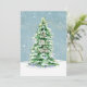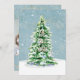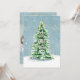 "Tarjeta fotográfica de la familia de los árboles sencillos de Navidades modernos y elegantes". Elegantemente pintado en acuarela un árbol de Navidad nevado, iluminado, con estrellas brillantes doradas girando en un suave cielo nevado azul polvoriento. El diseño de texto de la tipografía simplemente dice, "Oh, Santa Noche", proporcionando el simple foco en la razón de la temporada. Obra de arte pintada por la artista y diseñadora con licencia internacional Audrey Jeanne Roberts, copyright.