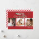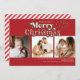 ¡Te deseamos una Feliz Navidad! Esta tarjeta fotográfica de vacaciones muestra un mensaje clásico en una divertida tipografía al estilo de Candy Cane sobre un simple fondo blanco. Con un set de 3 fotos en la parte delantera, esta tarjeta de vacaciones es una excelente manera de enviar Navidades a todos tus amigos y familia. La parte trasera está decorada con un estilo de cane de golosinas rojo y blanco a juego.