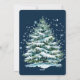 Una hermosa acuarela, un árbol verde de nieve, helado con agua y verde azulado y rodeado de copos de nieve voladores, cubre un lado de esta tarjeta azul de vacaciones de medianoche. "Feliz Navidad" en un guión elegante encabeza la tarjeta de felicitación, seguida de un saludo estacional personalizable. "Mis mejores deseos" y el nombre y fecha de su familia personalizado en una hermosa fuente serif. Todo el texto está en blanco puro para coincidir con la nieve en las ramas del árbol acuarela de la bonito. El árbol, en plena gloria, centra la carta hacia atrás, que también está en el azul profundo de la medianoche. Cada línea y palabra puede ser editada para su saludo de vacaciones personal.