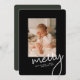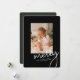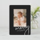 La moderna tarjeta minimalista de un Navidad fotográfico incluye un elegante guión de mariscos blancos y elegantes colores negro y plateado para una elegante tarjeta de felicitación de Navidades. Personalice el saludo clásico con su foto familiar personalizado!