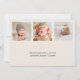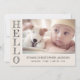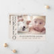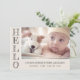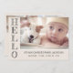Moderna foto de bebé anuncio de nacimiento moderno . Tarjeta multifoto de anuncio de nacimiento con lugar para una foto de bebé en la parte delantera y tres fotos más pequeñas en la parte posterior. HOLA diseño con letras en negrita al principio del anuncio de nacimiento.