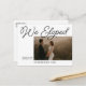 Anuncie su reciente retiro con estas tarjetas de invitación y deje que familiares y amigos conozcan sus planes para una celebración futura. Personalizar la foto para compartir la memoria y personalizar la fecha de su boda, ubicación y el Sr. y la Sra. lastname. Guión moderno para las palabras "nos fugamos" en la parte superior. ¡Enhorabuena! ©lddesignloft www.lddesignloft.com ©lorenadepante