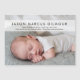 Presentamos nuestro moderno Photo Baby Name Stat Newborn Baby Fridge Magnet, una forma elegante y personalizada de anunciar la llegada de tu preciosa pequeña. Este imán está diseñado con la tipografía moderna, la sencillez y un toque de elegancia de moda, lo que lo convierte en la elección perfecta para expresar su emoción y gratitud. Personalice este imán con la adorable foto, nombre, estadísticas de nacimiento, un mensaje sincero y los nombres de los orgullosos padres. La superposición de transparencia blanca asegura que el texto siga siendo legible, creando un diseño visualmente atractivo y armonioso. Con su estilo minimalista y de moda, este imán desprende un encanto atemporal que captura perfectamente la alegría y la maravilla de la llegada de su recién nacido. Sirve como una invitación y una muestra de gratitud, permitiéndote compartir tu felicidad con la familia y amigos mientras expresas tu aprecio por su amor y apoyo. El formato de la tarjeta magnética añade un toque práctico, ya que permite a sus seres queridos mostrar fácilmente esta noticia especial en superficies magnéticas como refrigeradores o paneles de memo. Cada vez que vean este imán, recordarán la alegría y el amor que tu pequeño trae al mundo. ¡Felicidades por la llegada de tu nuevo paquete de alegría! Nuestro moderno Photo Baby Name Stat Newborn Baby Fridge Magnet es la manera perfecta de anunciar esta memorable ocasión de una manera elegante y memorable. Ordenen ahora y dejen que sus seres queridos compartan la emoción y celebración de este precioso hito.