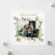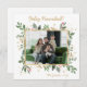 Esta simple tarjeta acuarela de agua, vegetación botánica y bayas, foto de vacaciones con tu foto favorita en el centro y las palabras "¡Feliz Navidad!" en un alfabeto moderno de oro encima de la foto y el nombre de tu familia y el año con el mismo tipo de letra en oro debajo de la foto es perfecto para mandarla a tus amigos y familiares. Su diseño minimalista y clásico es seguro que traerá sonrisas a los rostros de cada destinatario. La parte trasera es un negro a juego.