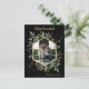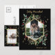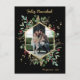 Esta moderna postal navideña de acuarela, vegetación botánica y bayas, con una foto en el centro del frente y las palabras "Feliz Navidad" en un moderno guión en oro encima de la foto y tu nombre familiar y el año con el mismo tipo de letra en oro debajo de la foto, es perfecta para mandarla a tus amigos y familiares. La parte trasera tiene un marco fotográfico coordinado con follaje y bayas continuando el elegante diseño en la parte posterior. El mensaje de vacaciones es personalizable y puede cambiarse a cualquier texto que desee.