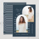 Tipografía geométrica moderna elegante azul marino 2 foto arco tarjeta de invitación de graduación.