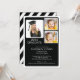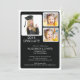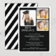 Invitación a la fiesta de graduación de fotos de Modern Elegance con 3 marcos de fotos blancos sobre un fondo negro moderno. Invierta nuestra invitación para ver una franja diagonal en blanco y negro correspondiente para un toque especial. Nuestra invitación contemporánea para graduar puede ser utilizada para una invitación de graduación para un niño graduado o un chica. Perfecto para una graduación de secundaria o universitaria. Visite nuestra tienda para ver esta clase de invitación a graduarse 2014 en una gran variedad de populares colores escolares.