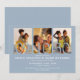 Esta elegante y chic invitación de boda en azul polvoriento incluye tus 3 fotos especiales y la fecha especial con tipografía clásica negra. Diseñado por Thisisnotme©