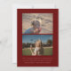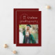Esta moderna invitación de graduación muestra una fotografía cuadrada en un fondo rojo oscuro y una tipografía de moda con el nombre de la escuela y el año de graduación dando la impresión de un sello y el nombre de los graduados resaltados de una manera muy moderna y a la moda, reflejando de cabeza la información de otras graduaciones. La parte trasera de la invitación de graduación incluye dos fotografías, perfectas para incluir una foto infantil, y un lugar para un mensaje más largo, ideal para resaltar los logros del graduado o los planes futuros.