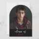 Celebra tu graduación con estilo con esta moderna y divertida invitación de graduación en forma de arco! Con una elegante paleta en blanco y negro con audaces brotes de marrón borgoña, este diseño minimalista añade la personalidad adecuada al gran día. La parte de atrás muestra la foto favorita de tu graduado, lo que hace que sea un placer perfecto para compartir con amigos y familiares. Sencillo, elegante y lleno de alegría, ¡igual que tu graduación! Creado por Simply Farmhouse Press.