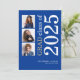 Moderna foto de 3 foto de 2025 de graduación azul. Una tipografía audaz y elegante y diseño fotográfico múltiple, con texto grande rotado y a la derecha en blanco y oro sobre un fondo de azul real. Personalice fácilmente el resto del texto y reemplace las fotos de las plantillas con su propia orientación cuadrada.