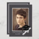 Celebra los logros de tu estudiante graduado con esta moderna tarjeta de invitación para graduación de invitación fotográfica con un retrato de graduación de tu elección enmarcado por una simple frontera gris y blanca, y adornado con un gorro de graduación y un diploma que puedes personalizar con el año de graduación. Personalice la parte posterior con los detalles de la celebración y la información de contacto.