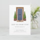 Cierra la puerta delantera. Celebra tu nuevo hogar con graciosas tarjetas de invitación. Estas nuevas tarjetas de personalizable de invitación en casa te permiten compartir noticias emocionantes con tus amigos y familia con tu nueva dirección, con un poco de humor. La tarjeta imprimible de invitación móvil divertida VESTA presenta un diseño sencillo con una puerta frontal color azul marino con dos plantas verdes y una alfombra casera dulce, acompañada de un moderno menú sans serif y un guión clásico que destaca el anuncio en movimiento y la nueva dirección.
