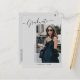 Esta elegante y minimalista tarjeta postal de invitación de graduación, presenta elementos de diseño de texto moderno fusionado con escritura caligráfica en una impresión de papel estilo kraft gris plateado. La foto de los graduados se coloca artísticamente en la parte delantera de la tarjeta, mientras que la parte posterior ofrece espacios de texto personalizados para información sobre la graduación y el viaje futuro. Para ver más artículos como este, visita mi tienda aquí en "www.Zazzle.com/LakeViewCardCo". ¡Gracias