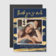 Moderna Navy Blue Gold Script Simple Graduación De Foto Gracias Tarjeta Magnética. "Gracias" a tu familia y amigos con esta hermosa tarjeta de agradecimiento. Todos los textos están preorganizados para que puedas personalizarlos fácil y rápidamente con tus propias palabras.