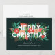 Esta bonita y elegante tarjeta de vacaciones corporativa cuenta con varios elementos florales a mano (pino, flores, capullos, pinecones, hojas y brotes). La tipografía moderna dice, "Feliz Navidad" en blanco, y los elementos folclóricos están por debajo, con algunos elementos por encima del texto. Las plantillas de texto, tanto en el frente como en el reverso, son fáciles de personalizar para cualquier empresa. El color de fondo (mostrado en un verde profundo) se puede personalizar a un color diferente, si se desea. *Todas las obras de arte creadas exclusivamente por Orabella Prints - todos los derechos reservados.